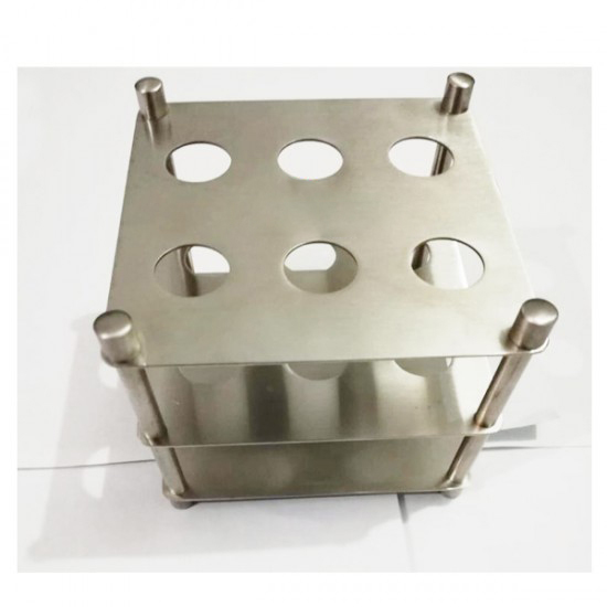 This syringe rack has 6 places, is autoclavable and is suited to 60cc syringes.